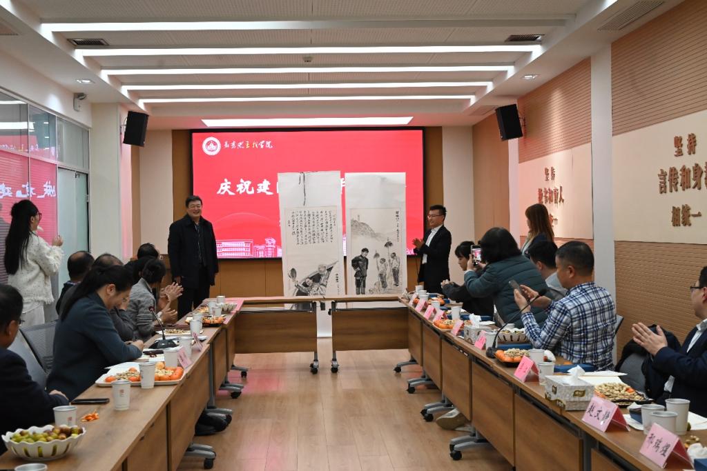 学院教师刘宗怀揣对学院的赤诚热爱和深切祝福,现场捐赠了精心创作的书画作品。
