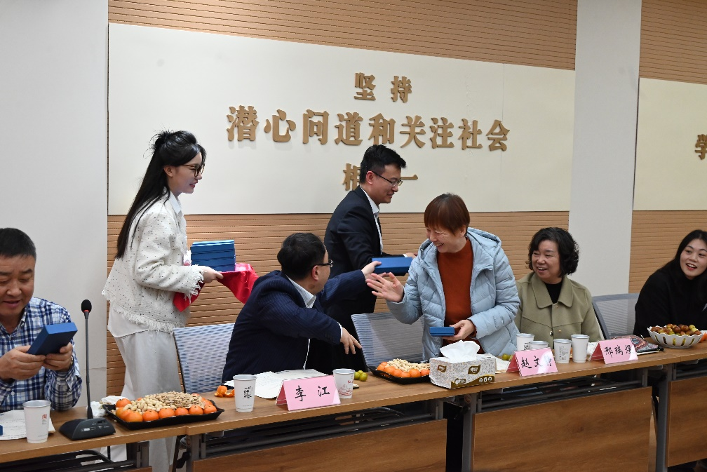 学院党总支书记李祎代表学院为到会嘉宾颁发了承载着深情厚谊的院庆纪念品。