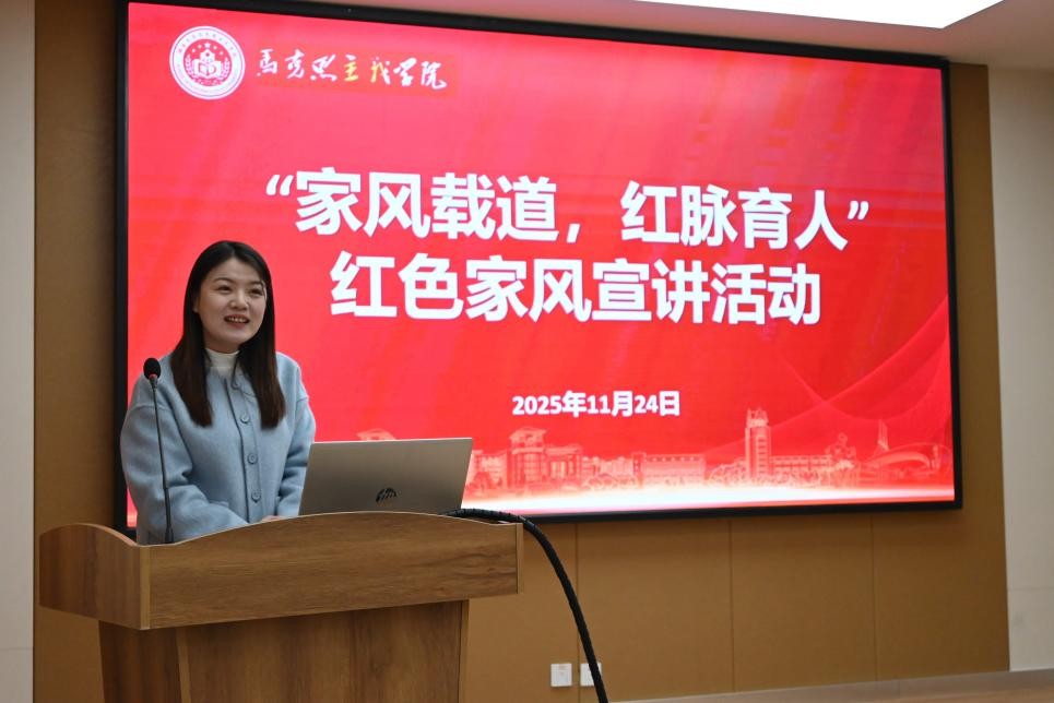 为深入推进红色家风宣传教育,传承红色基因、厚植家国情怀,引导青年学子筑牢理想信念根基,11月24日,马克思主义学院开展 “家风载道、红脉育人”红色家风宣讲活动。