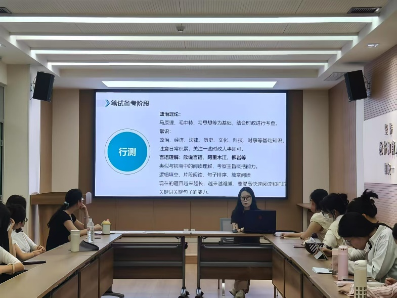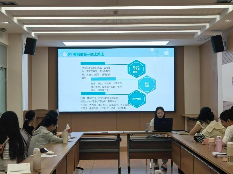 6月12日,2022级马克思主义理论专业郝伟、胡婷婷就基层工作的选择以及备考方式进行了分享。郝伟分享了对于基层工作岗位的理解和选岗策略、报考流程等个人经验。